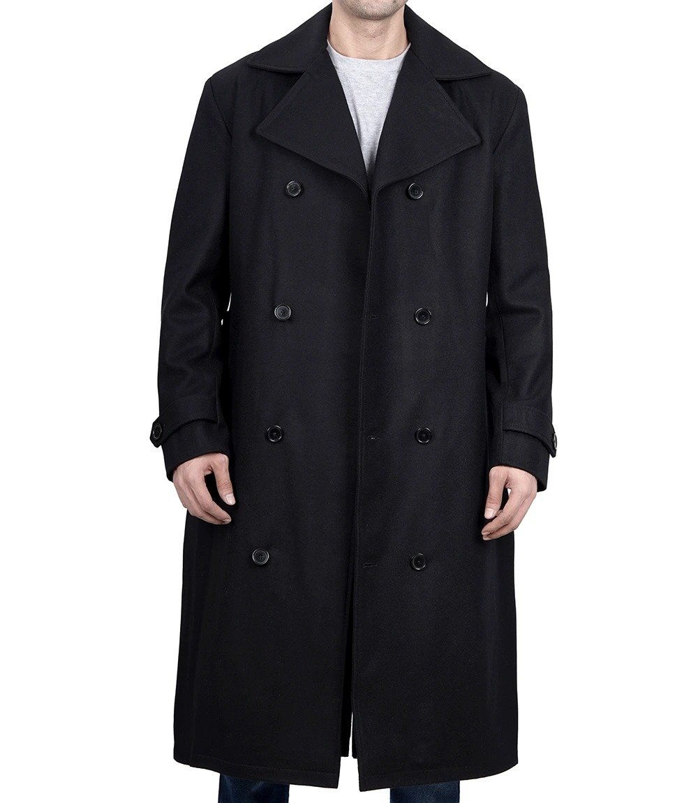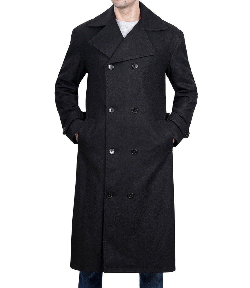 Black Wool Peacoat for Men – Warm Double Breasted Design