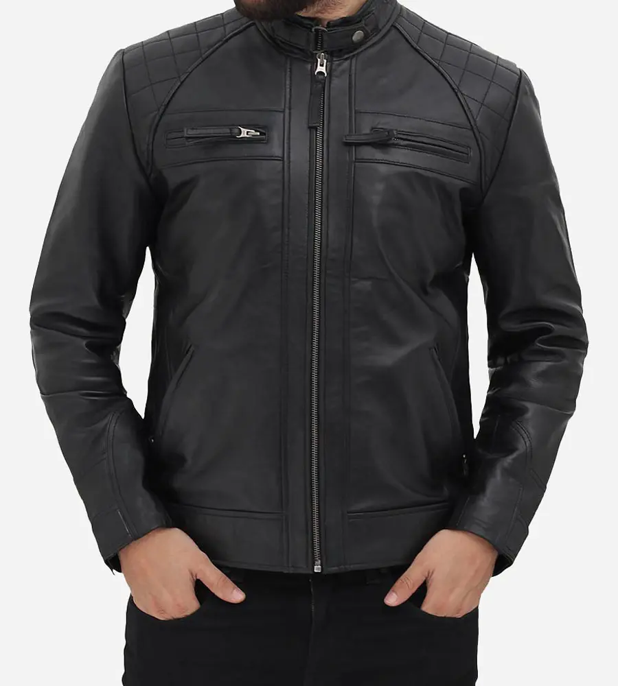 Cafe Racer Black Leather Biker Jacket