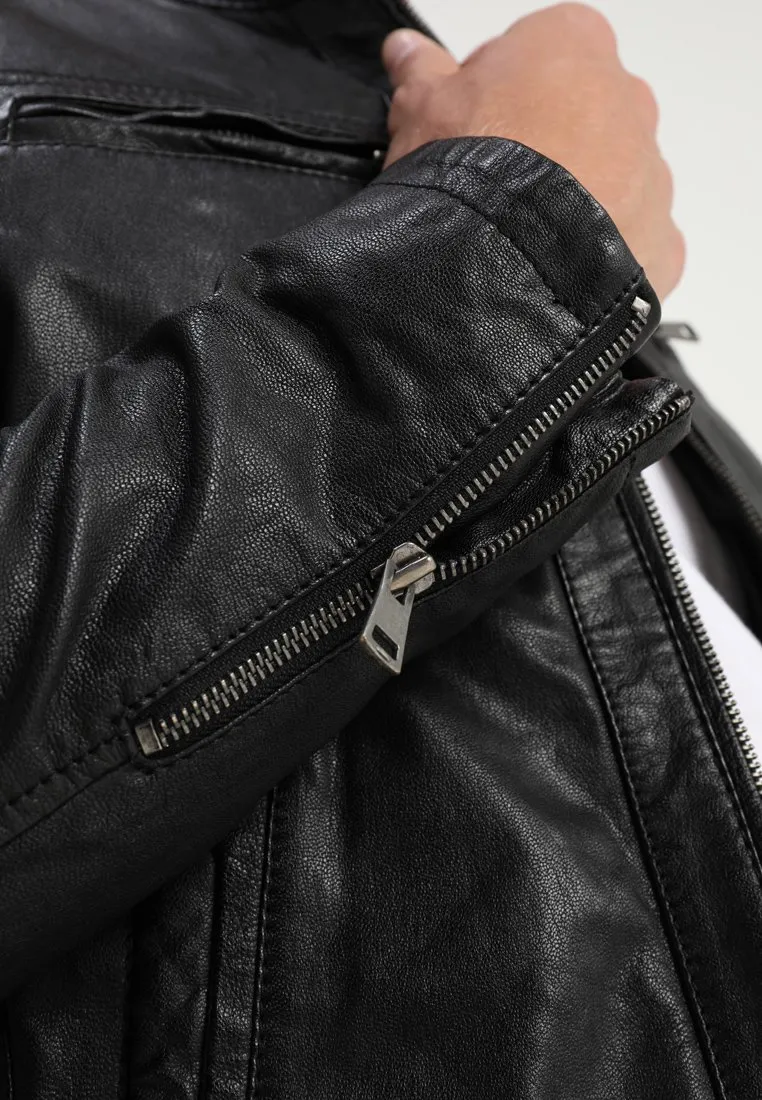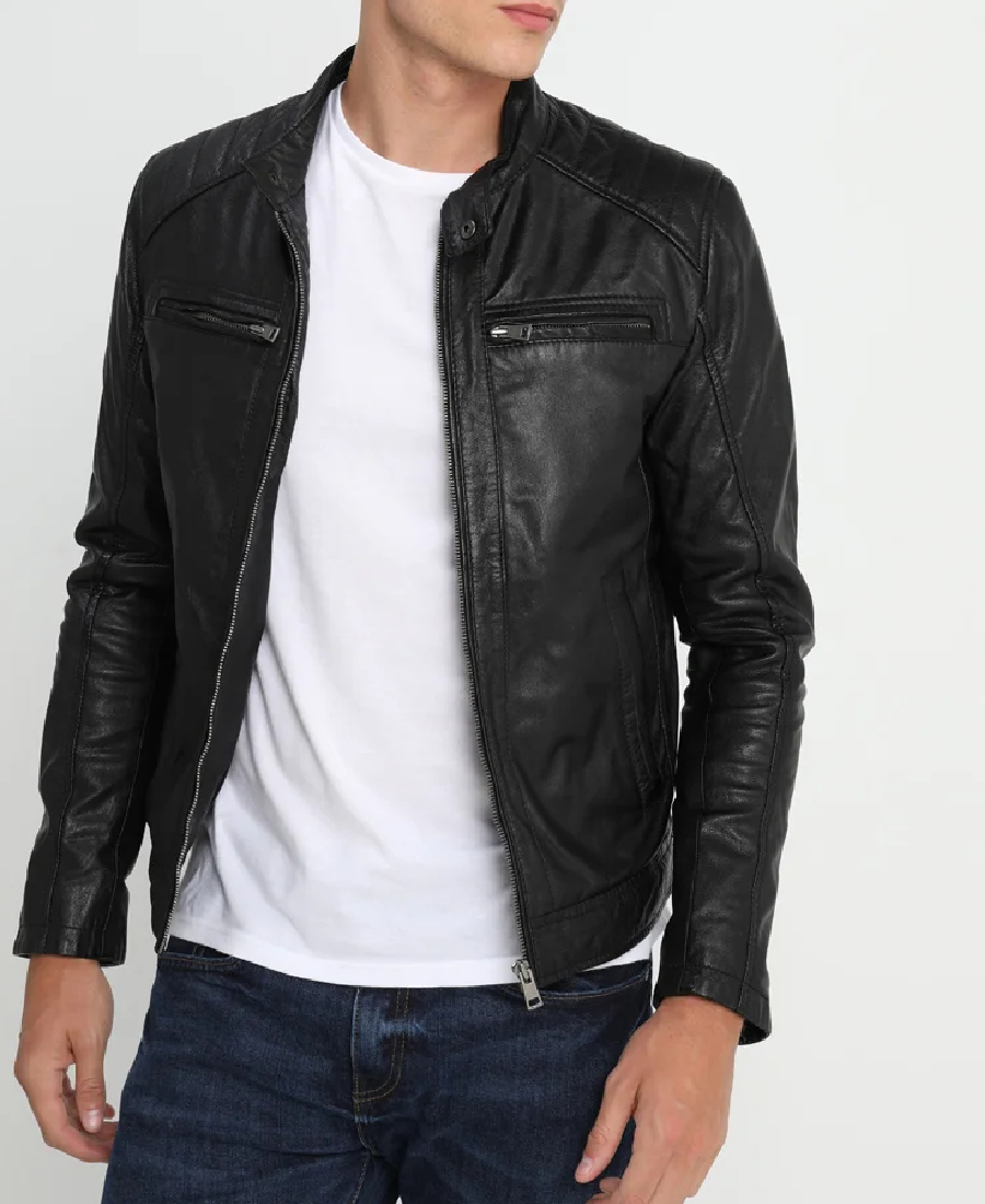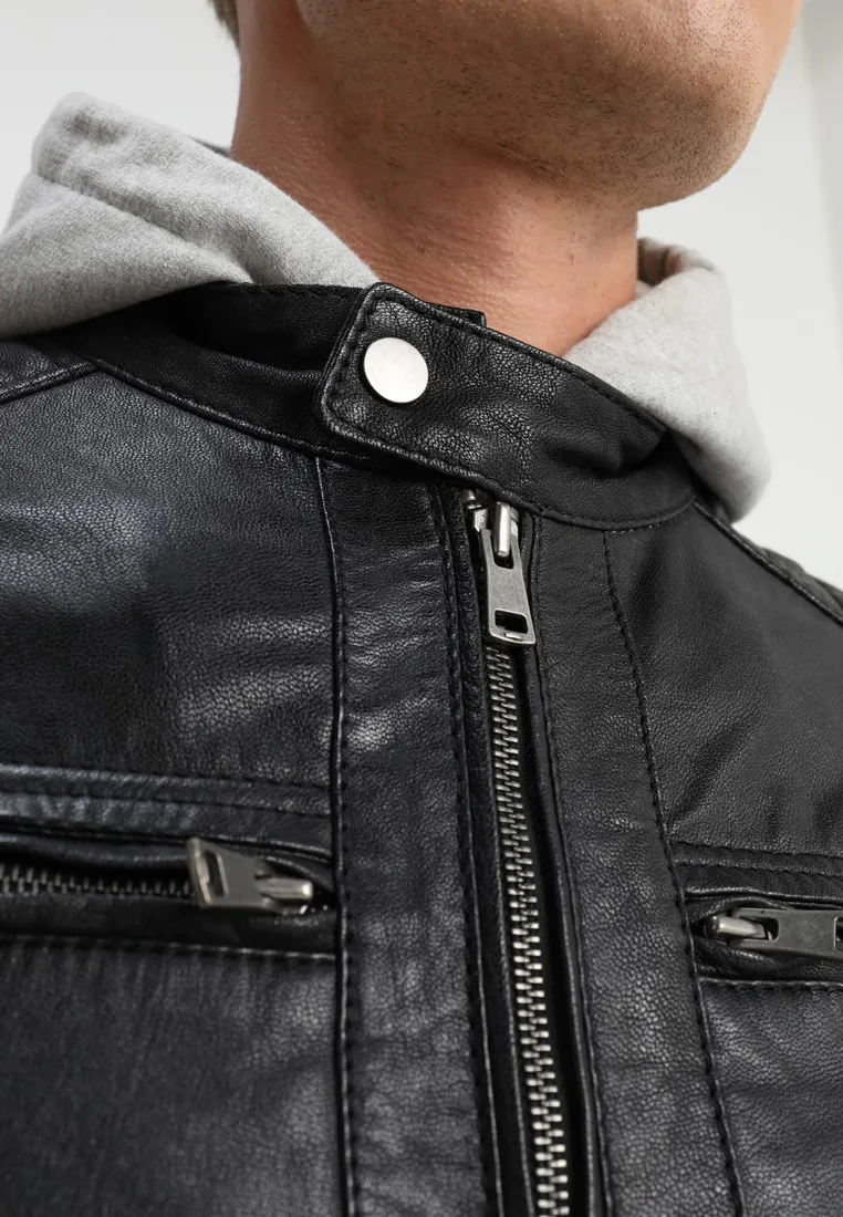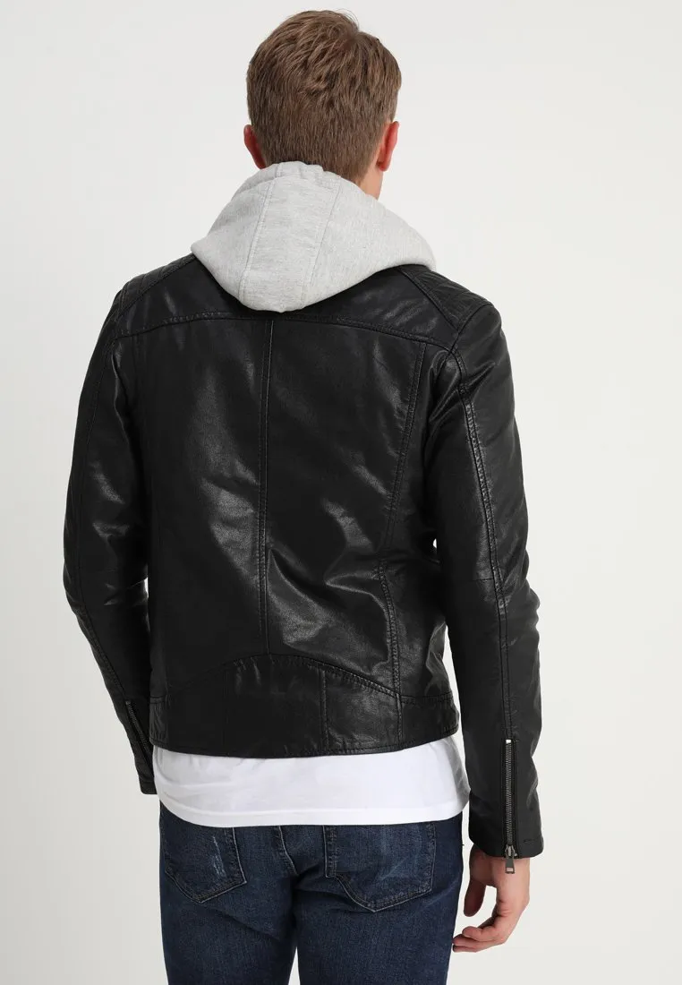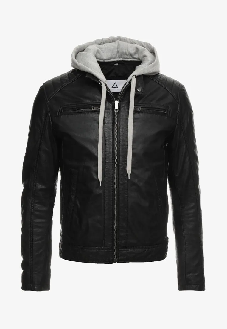 Cafe Racer Black Leather Jacket With Hood