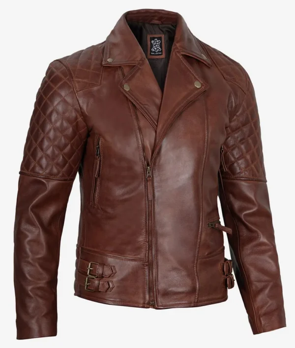 Mens Cognac Leather Motorcycle Jacket – Asymmetrical Design