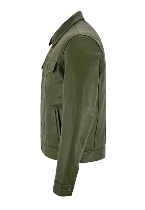 Mens Olive Green Leather Trucker Jacket