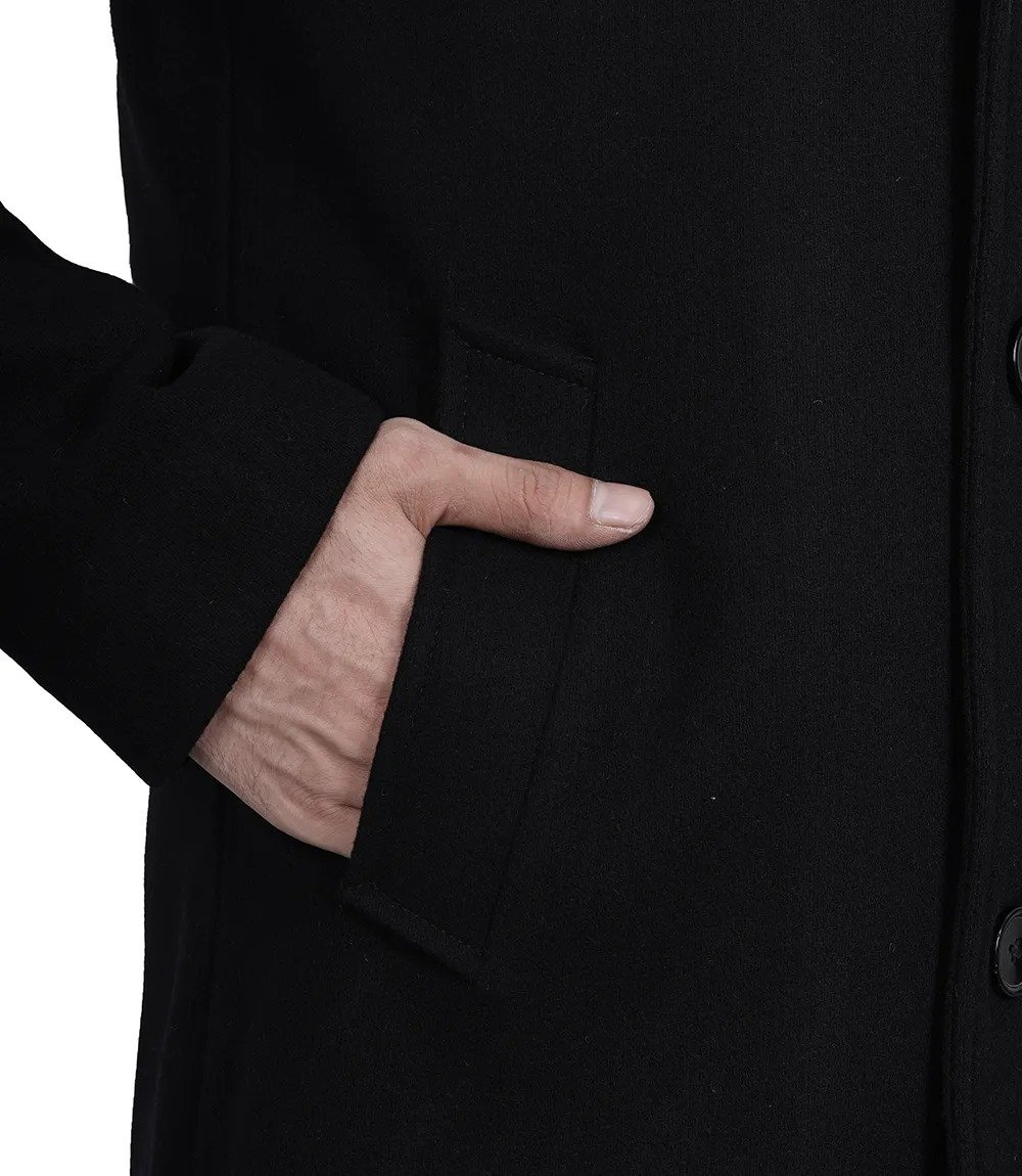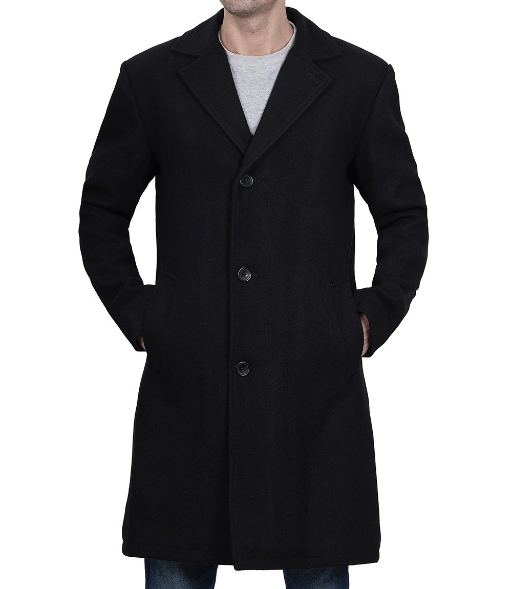 Modern Fit Long Length Black Wool Topcoat – Timeless Mens Style