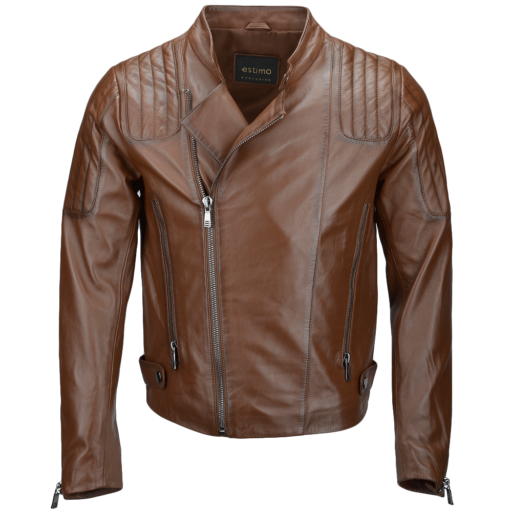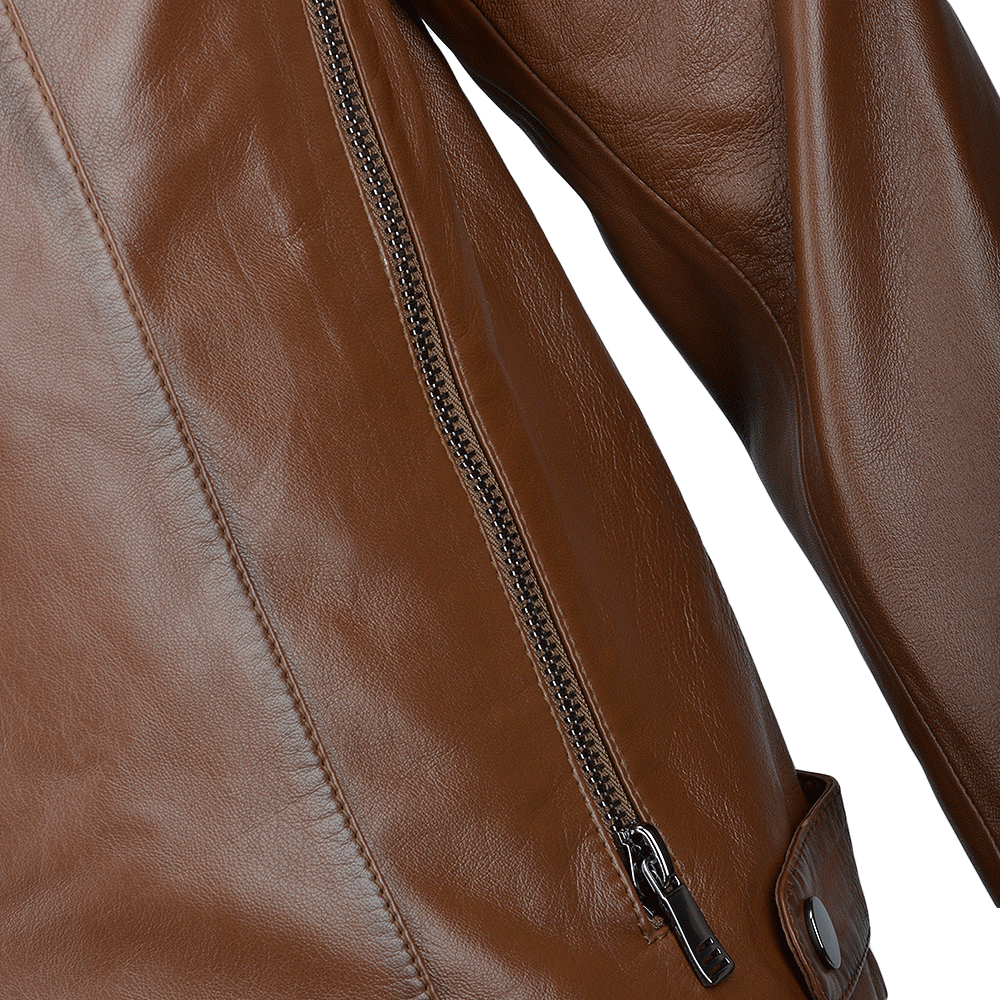 Premium Ribbed Leather Motorcycle Jacket – Camel Color